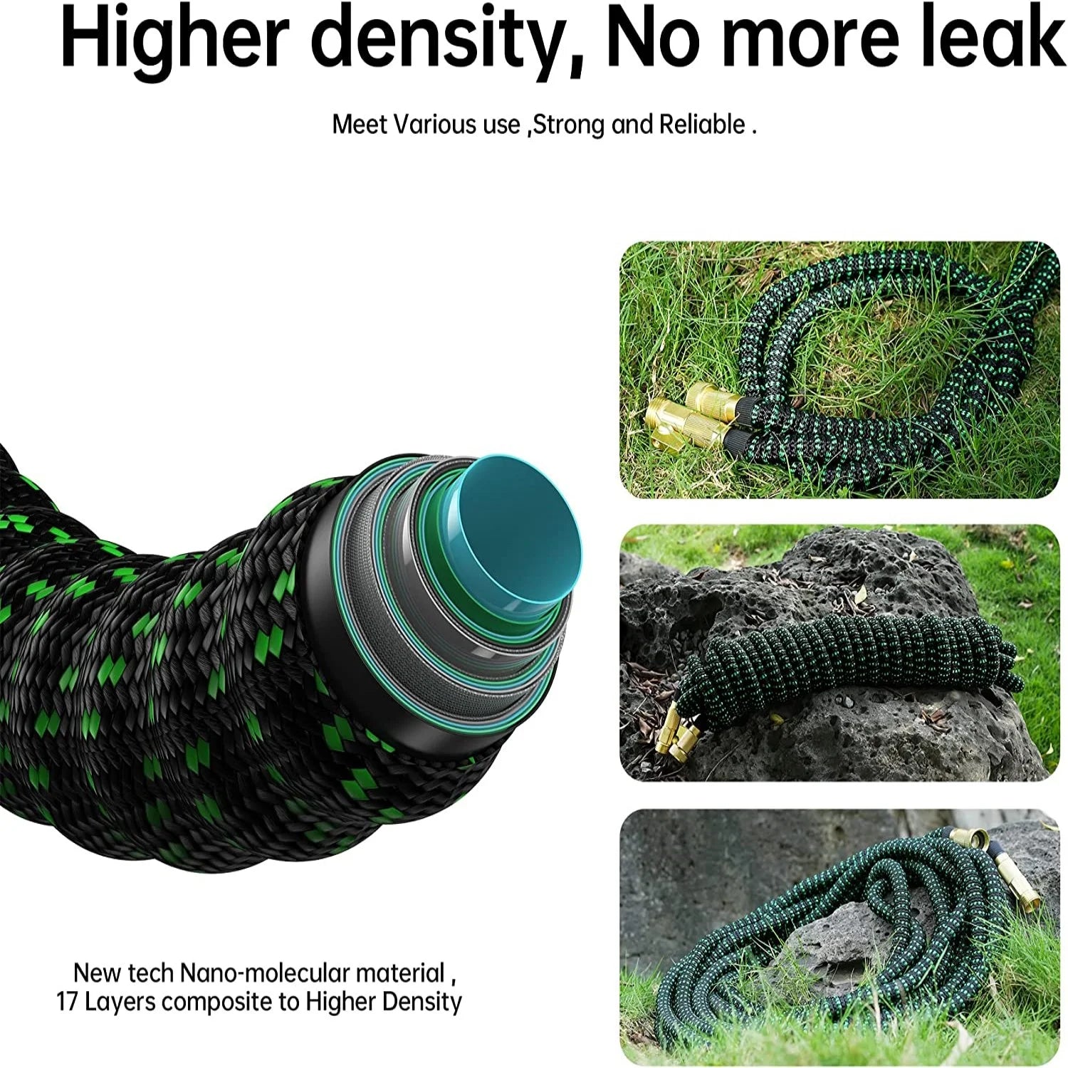 【Expandable & Lightweight】- The garden hose will quickly expand up to 3 times of length with the water pressure (60-180 Bar) and return to its original length when draining off water. Just make sure there is enough water pressure to expand the hose. It's much more lightweight than traditional hoses. Super easy and convenient to use, carry and store.