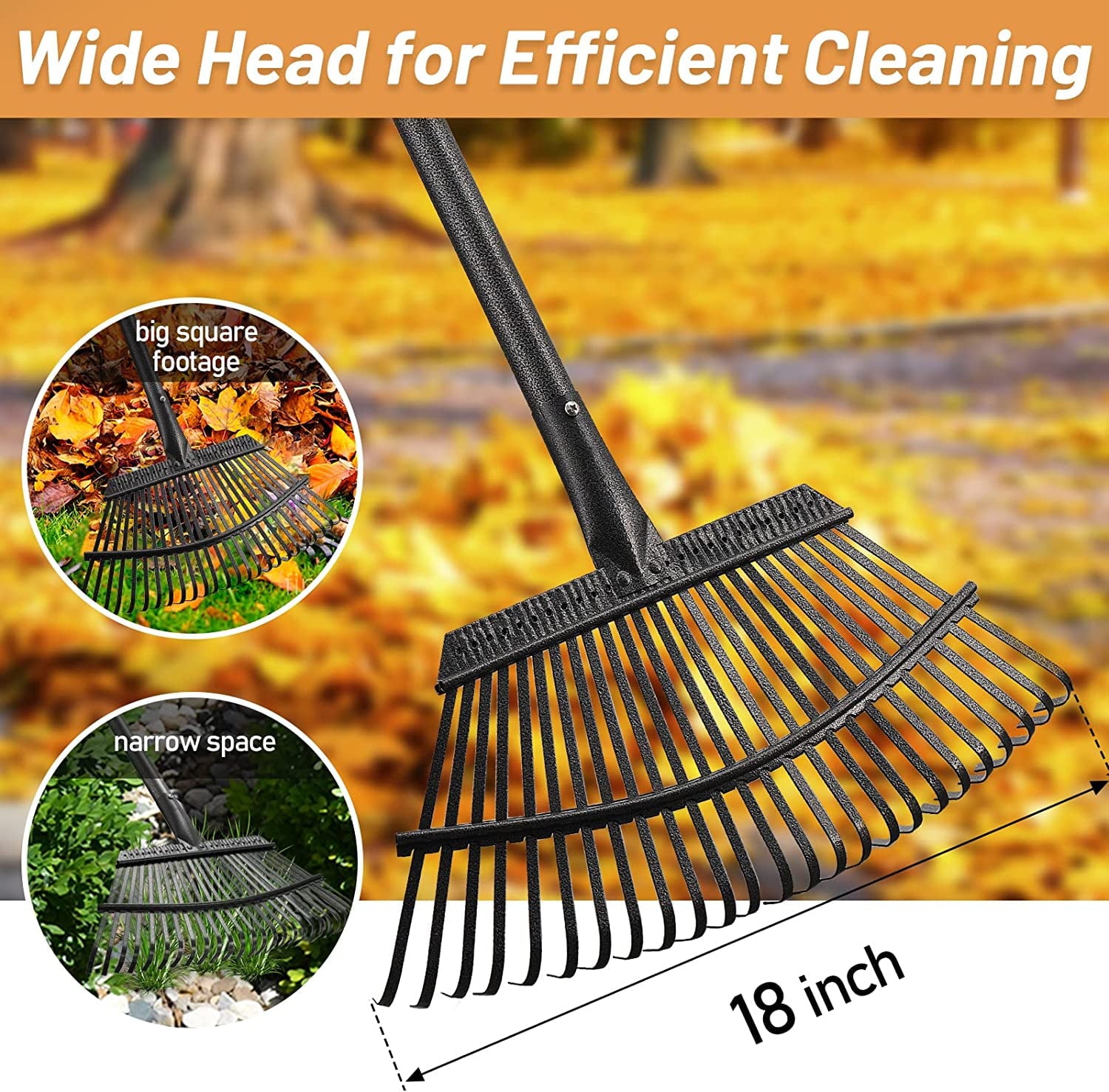 Garden Rake - Large Leaves Rakes for Gardening - 25 Metal Tines 18" Wide - 78" Long Handle Leaf Rakes for Lawns Heavy Duty for Yard Lawn Shrub Garden Beds