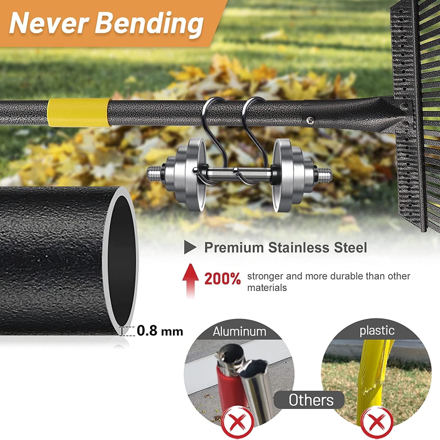 Thickened 1" diameter yard rake with rustproof&skidproof old school polish and paint spraying is stronger for heavy yard duty without snaps.