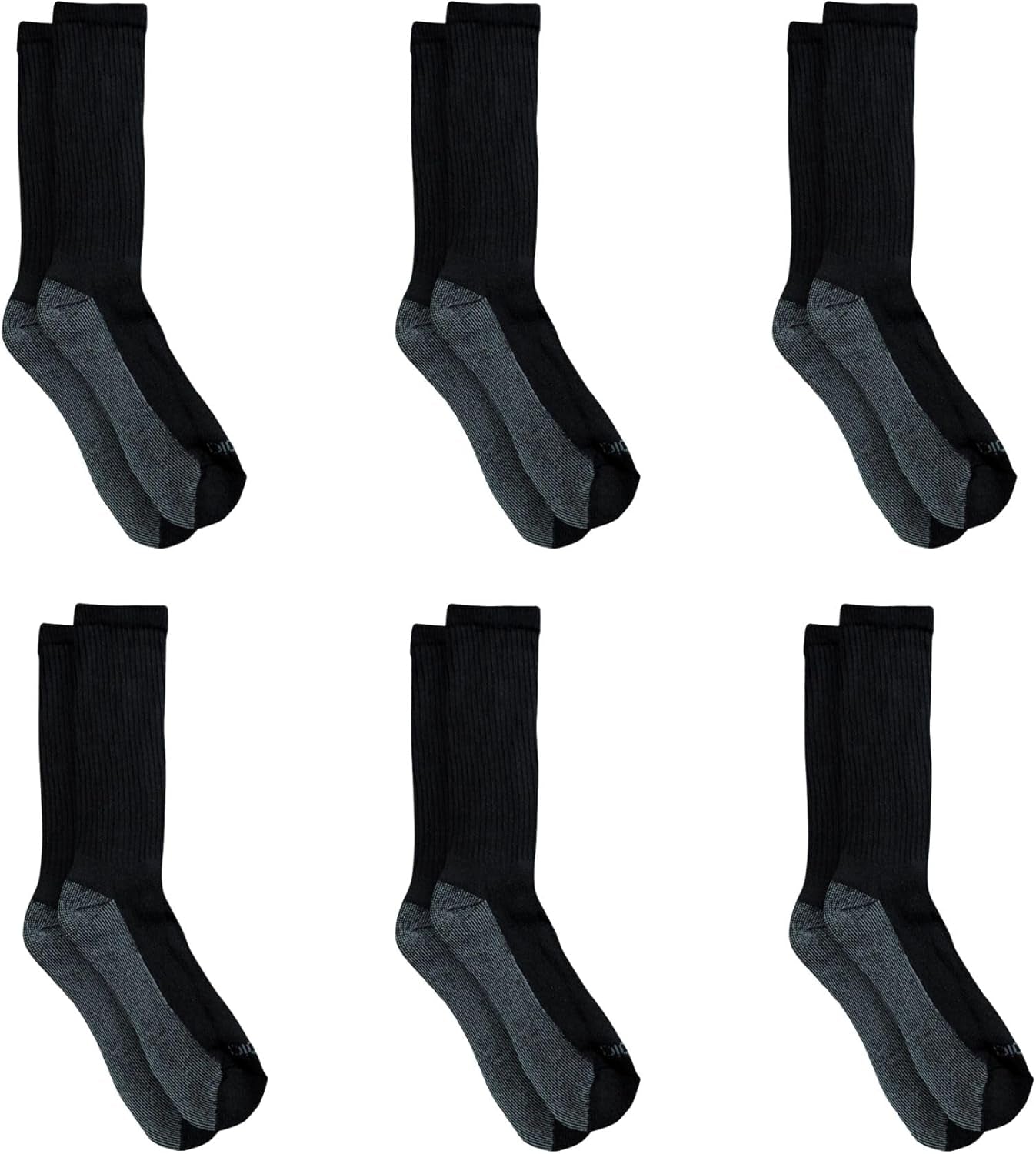 Dickies dri-tech comfort 6 Pairs crew with wicking, moisture management fibers keeps feet dry, ventilation channels engineered for air circulation and moisture control, arch compression hugs feet and keeps socks in place, while providing in-step support, Reciprocated heel and toe for superior fit and full cushion comfort