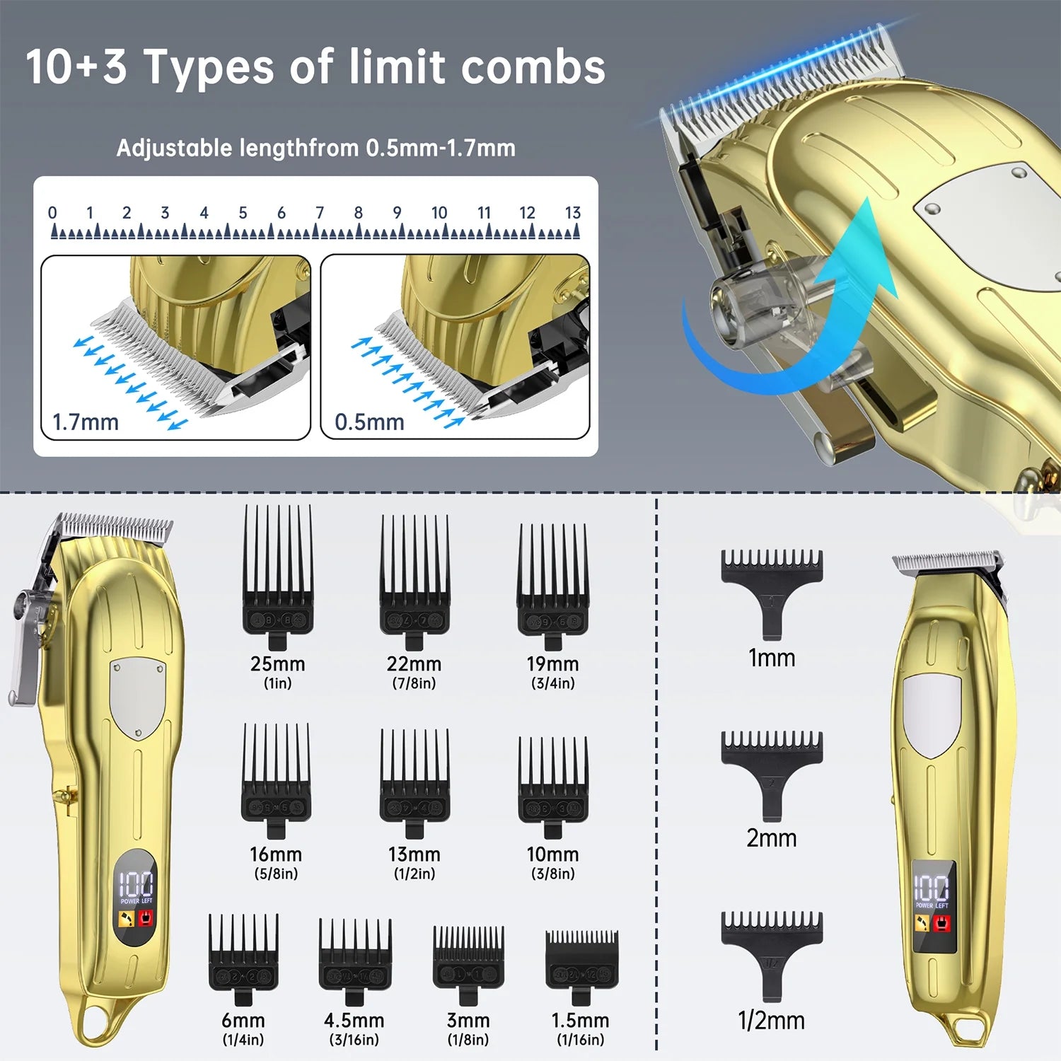 This clipper trimmer set adopts 440c stainless steel blades which provides a snag-free hair trimming experience.